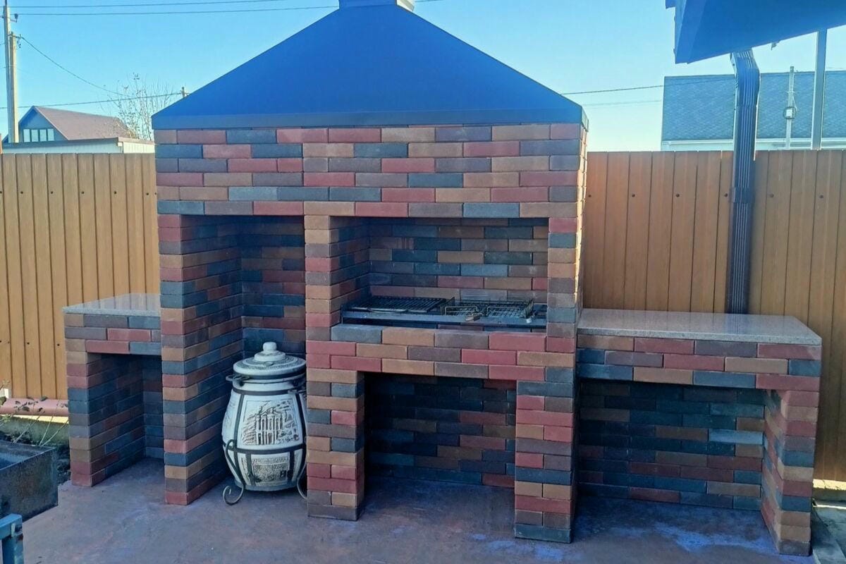 Мангал "BBQ64" с разделочным столом и мойкой коричневый кирпич